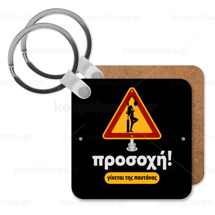 Προσοχή Γίνεται της πουτ.νας, Μπρελόκ Ξύλινο τετράγωνο MDF
