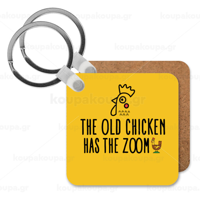 The old chicken has the zoom, Μπρελόκ Ξύλινο τετράγωνο MDF