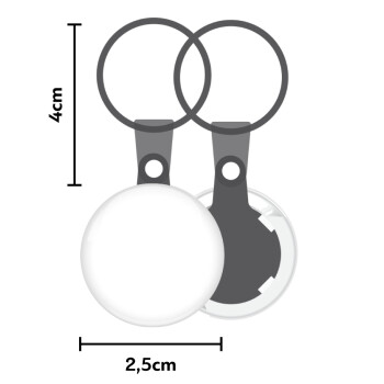 Round, small and elegant, shiny keychain of excellent quality with vivid colors and great durability.