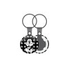 Round, small and elegant, shiny keychain of excellent quality with vivid colors and great durability.