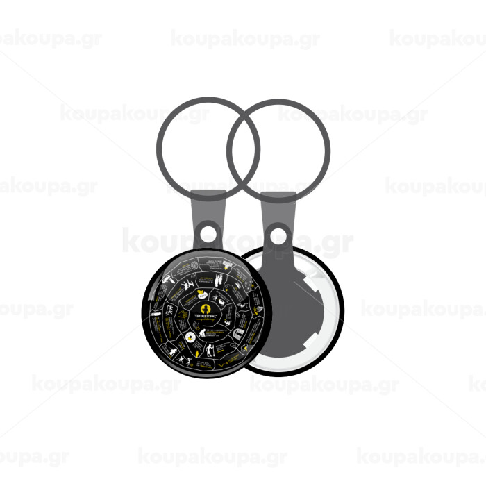 Round, small and elegant, shiny keychain of excellent quality with vivid colors and great durability.