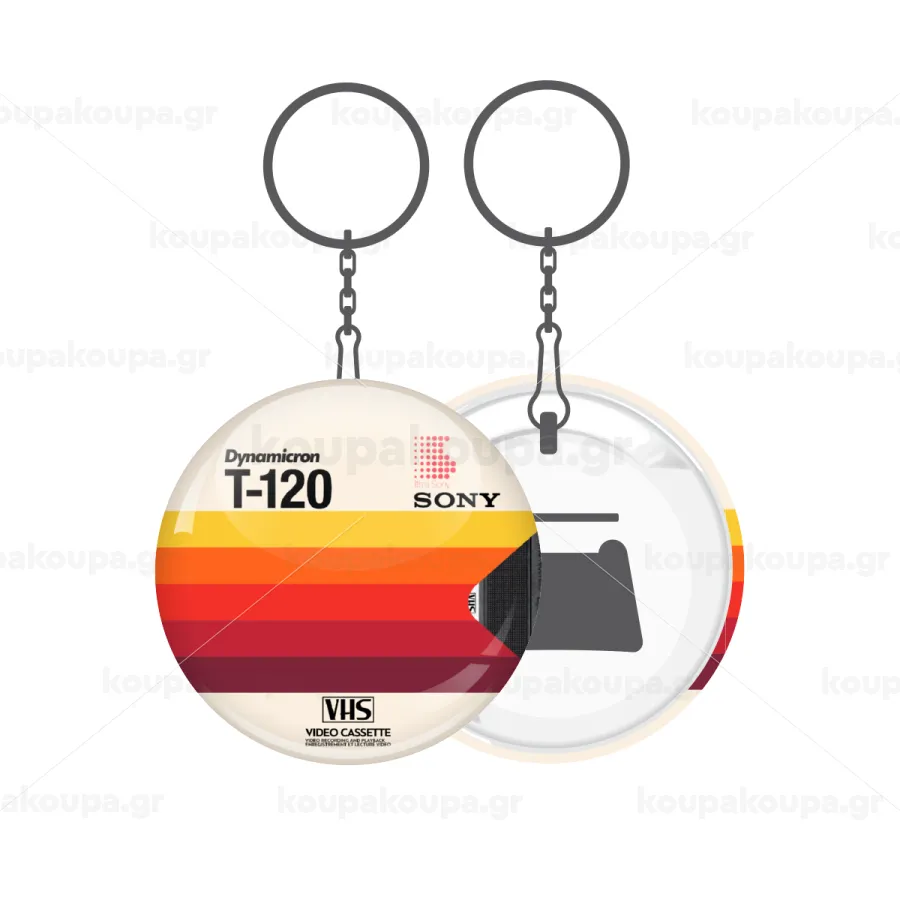 VHS sony dynamicron T-120, Μπρελόκ μεταλλικό 5cm με ανοιχτήρι