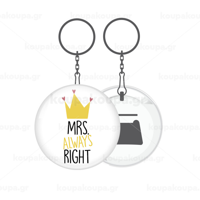 Mrs "Always" right, Μπρελόκ μεταλλικό 5cm με ανοιχτήρι
