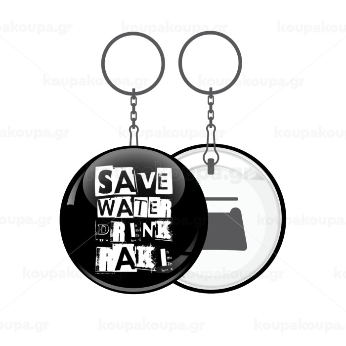 Save Water, Drink RAKI, Μπρελόκ μεταλλικό 5cm με ανοιχτήρι