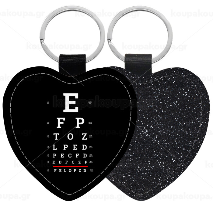 EYE test chart, Μπρελόκ PU δερμάτινο glitter καρδιά ΜΑΥΡΟ