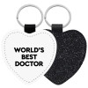 World's Best Doctor, Μπρελόκ PU δερμάτινο glitter καρδιά ΜΑΥΡΟ