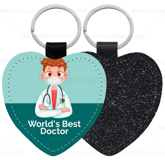 World's Best Doctor, Μπρελόκ PU δερμάτινο glitter καρδιά ΜΑΥΡΟ