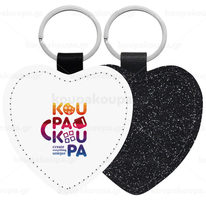 koupakoupa, Μπρελόκ PU δερμάτινο glitter καρδιά ΜΑΥΡΟ