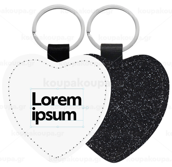 Lorem ipsum, Μπρελόκ PU δερμάτινο glitter καρδιά ΜΑΥΡΟ