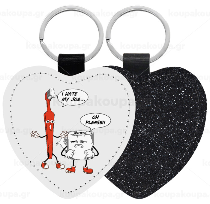 I hate my job, Μπρελόκ PU δερμάτινο glitter καρδιά ΜΑΥΡΟ