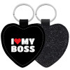 I LOVE MY BOSS, Μπρελόκ PU δερμάτινο glitter καρδιά ΜΑΥΡΟ