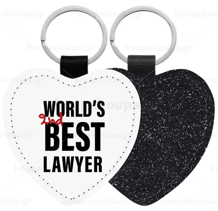 2nd, World Best Lawyer , Μπρελόκ PU δερμάτινο glitter καρδιά ΜΑΥΡΟ