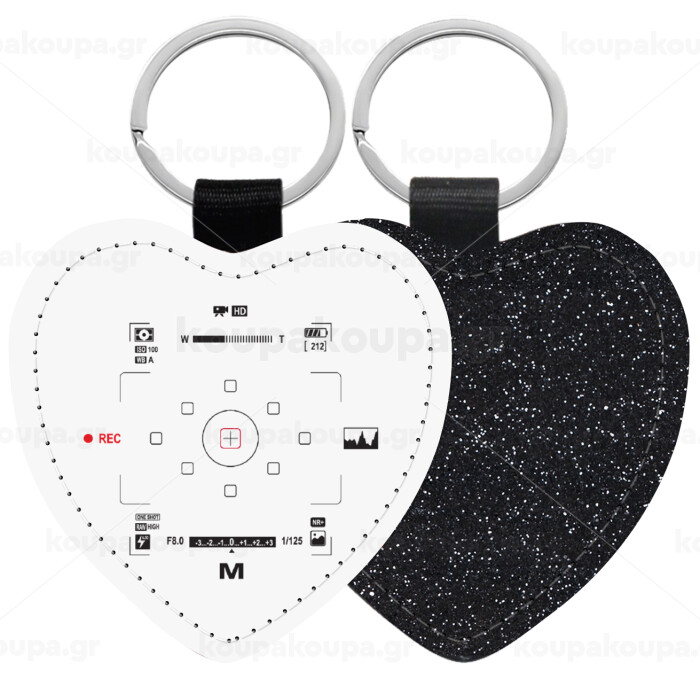 Camera viewfinder, Μπρελόκ PU δερμάτινο glitter καρδιά ΜΑΥΡΟ