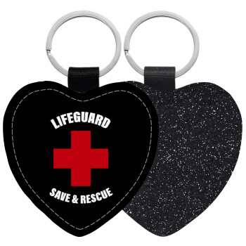 Lifeguard Save & Rescue, Μπρελόκ PU δερμάτινο glitter καρδιά ΜΑΥΡΟ