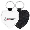 AMG Mercedes, Μπρελόκ PU δερμάτινο glitter καρδιά ΜΑΥΡΟ