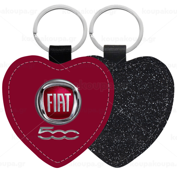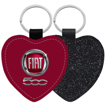 FIAT 500, Μπρελόκ PU δερμάτινο glitter καρδιά ΜΑΥΡΟ
