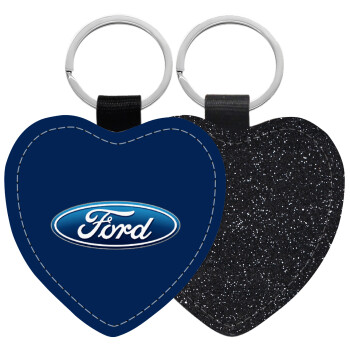 Ford, Μπρελόκ PU δερμάτινο glitter καρδιά ΜΑΥΡΟ