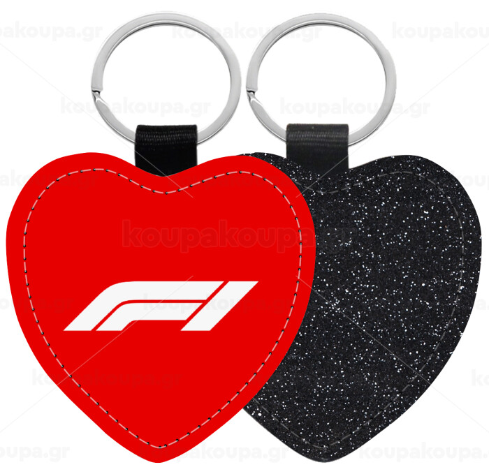 Formula 1, Μπρελόκ PU δερμάτινο glitter καρδιά ΜΑΥΡΟ