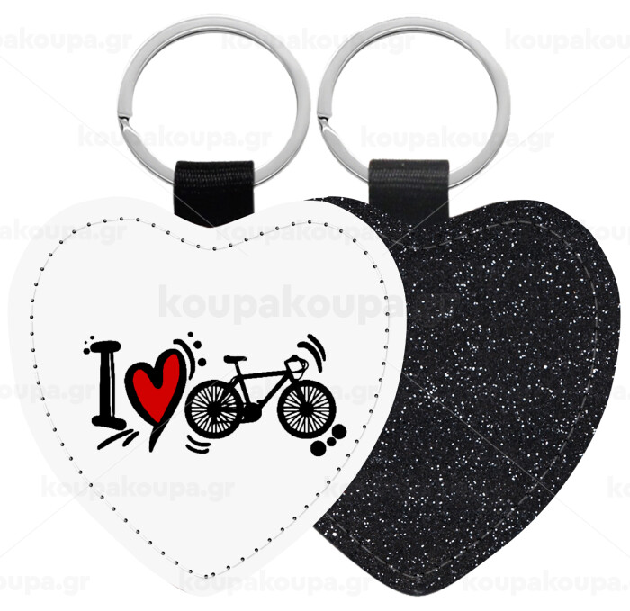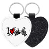 I love my bike, Μπρελόκ PU δερμάτινο glitter καρδιά ΜΑΥΡΟ