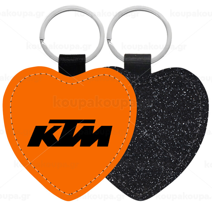 KTM, Μπρελόκ PU δερμάτινο glitter καρδιά ΜΑΥΡΟ