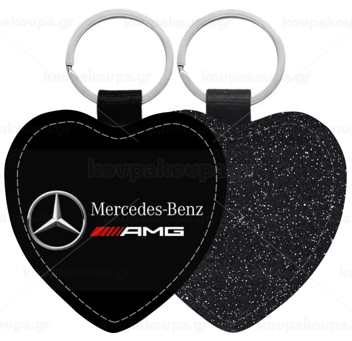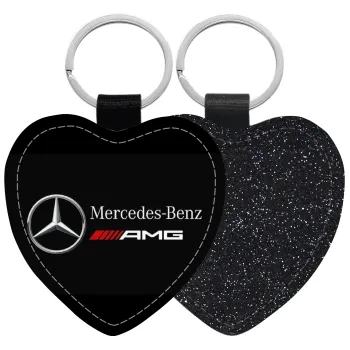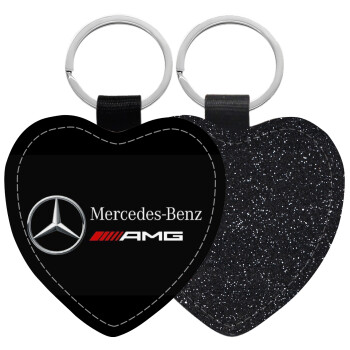 Mercedes AMG, Μπρελόκ PU δερμάτινο glitter καρδιά ΜΑΥΡΟ