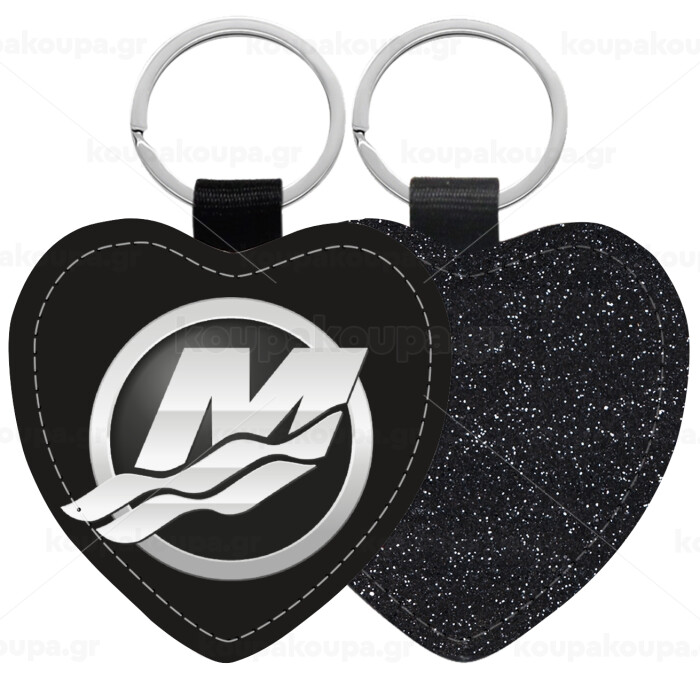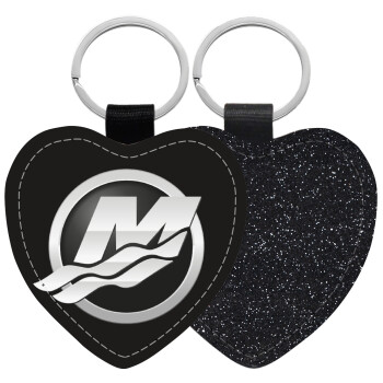 Mercury, Μπρελόκ PU δερμάτινο glitter καρδιά ΜΑΥΡΟ
