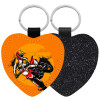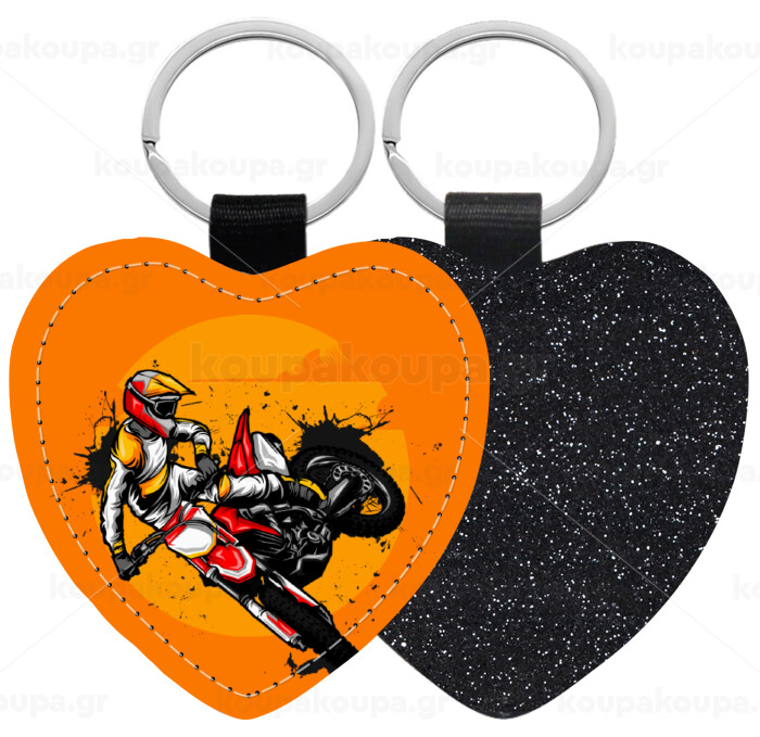 Motocross, Μπρελόκ PU δερμάτινο glitter καρδιά ΜΑΥΡΟ