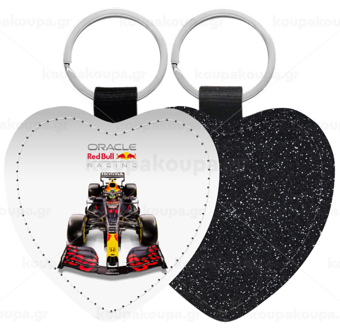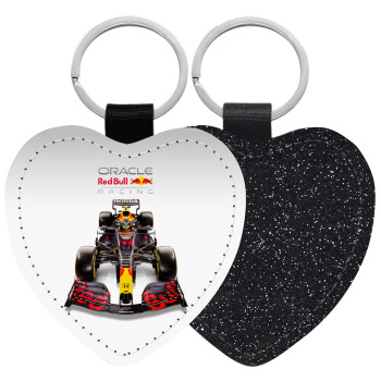 Redbull Racing Team F1, Μπρελόκ PU δερμάτινο glitter καρδιά ΜΑΥΡΟ