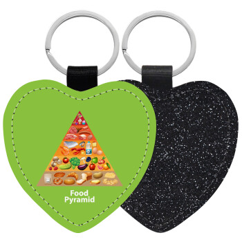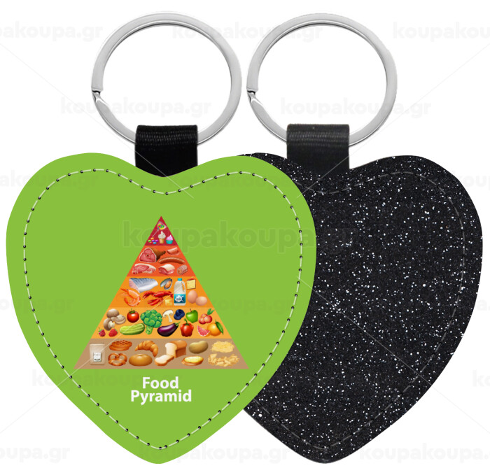 Food pyramid chart, Μπρελόκ PU δερμάτινο glitter καρδιά ΜΑΥΡΟ