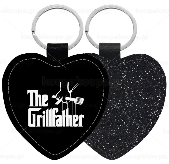 The Grillfather, Μπρελόκ PU δερμάτινο glitter καρδιά ΜΑΥΡΟ