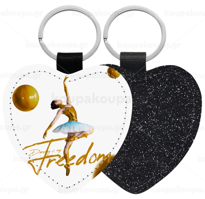 Gold Dancer, Μπρελόκ PU δερμάτινο glitter καρδιά ΜΑΥΡΟ