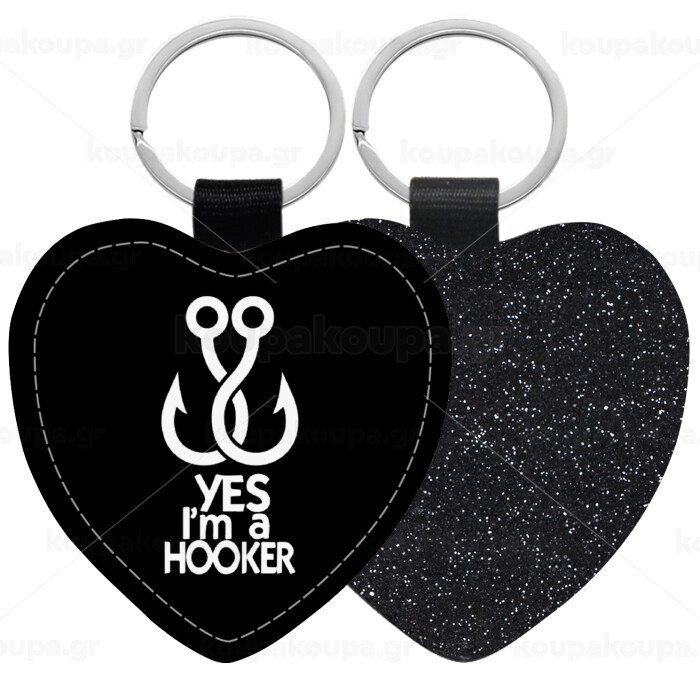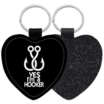Yes i am Hooker, Μπρελόκ PU δερμάτινο glitter καρδιά ΜΑΥΡΟ
