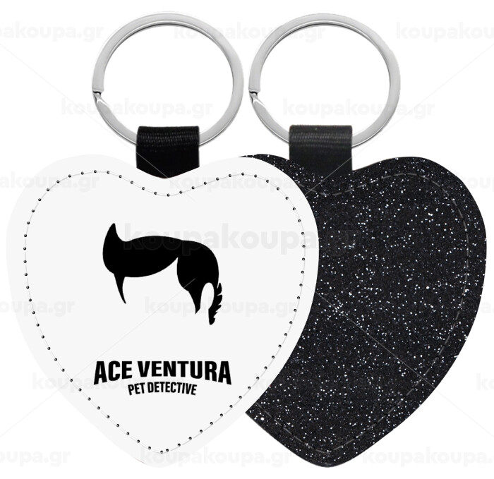 Ace Ventura Pet Detective, Μπρελόκ PU δερμάτινο glitter καρδιά ΜΑΥΡΟ