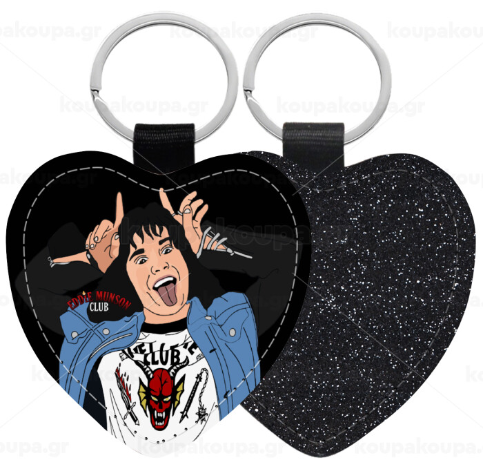Eddie Munson, Μπρελόκ PU δερμάτινο glitter καρδιά ΜΑΥΡΟ