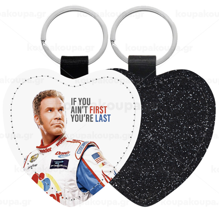 If You Ain't First You're Last Ricky Bobby, Talladega Nights, Μπρελόκ PU δερμάτινο glitter καρδιά ΜΑΥΡΟ