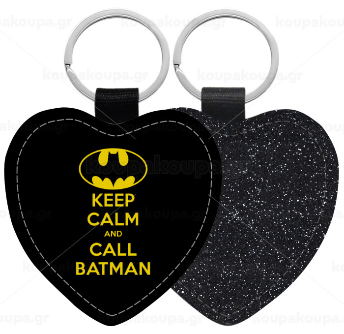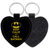 KEEP CALM & Call BATMAN, Μπρελόκ PU δερμάτινο glitter καρδιά ΜΑΥΡΟ