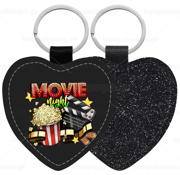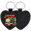 Movie night, Μπρελόκ PU δερμάτινο glitter καρδιά ΜΑΥΡΟ