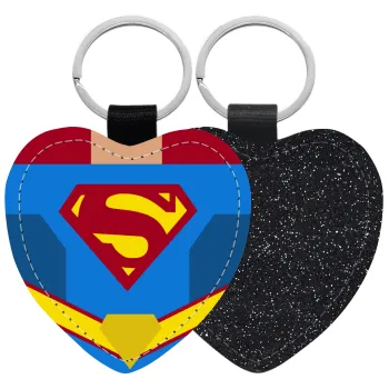 Superman flat, Μπρελόκ PU δερμάτινο glitter καρδιά ΜΑΥΡΟ
