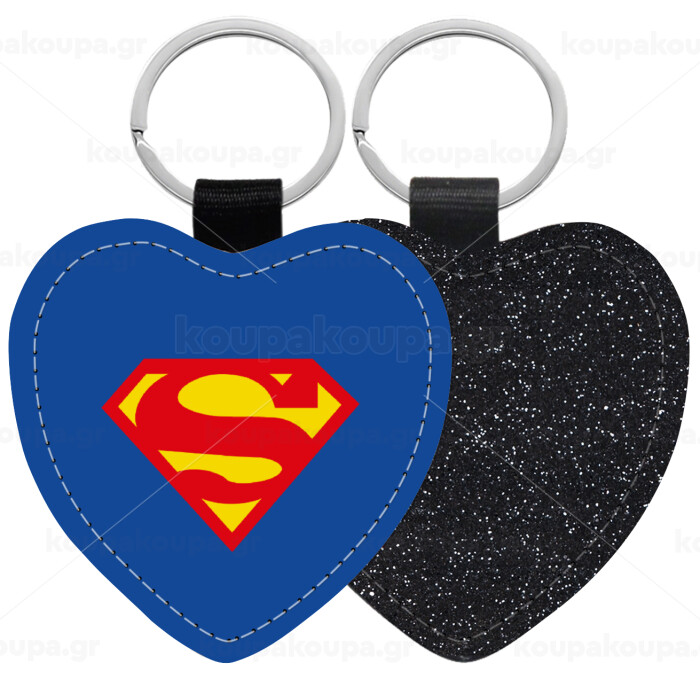 Superman, Μπρελόκ PU δερμάτινο glitter καρδιά ΜΑΥΡΟ