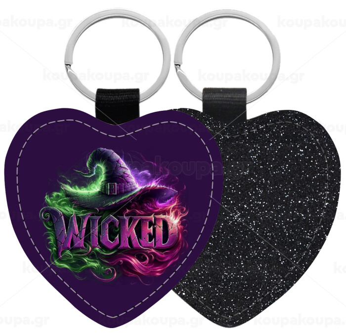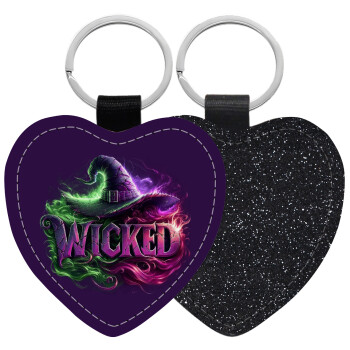 Wicked, Μπρελόκ PU δερμάτινο glitter καρδιά ΜΑΥΡΟ