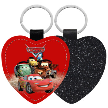 Αυτοκίνητα, Μπρελόκ PU δερμάτινο glitter καρδιά ΜΑΥΡΟ