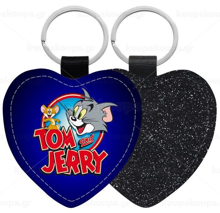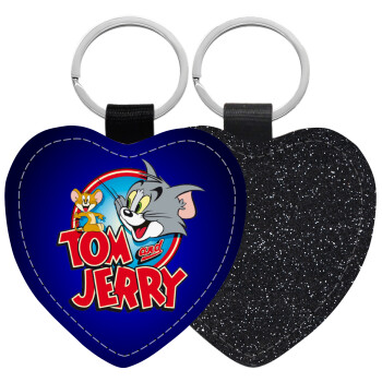 Tom and Jerry, Μπρελόκ PU δερμάτινο glitter καρδιά ΜΑΥΡΟ