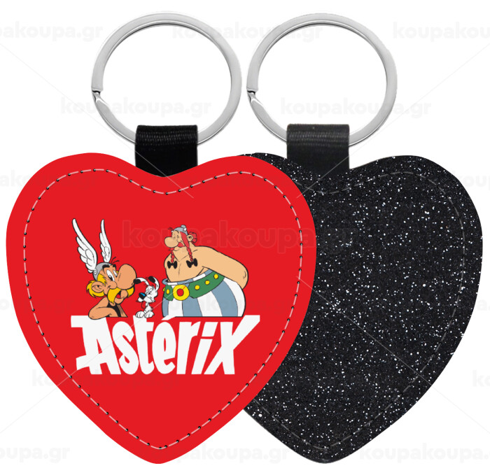 Asterix and Obelix, Μπρελόκ PU δερμάτινο glitter καρδιά ΜΑΥΡΟ
