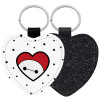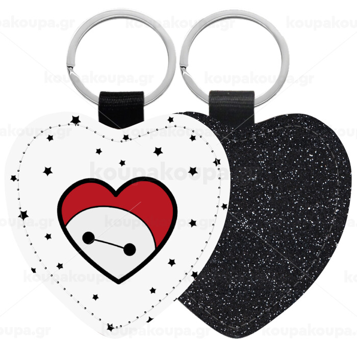 Baymax heart, Μπρελόκ PU δερμάτινο glitter καρδιά ΜΑΥΡΟ