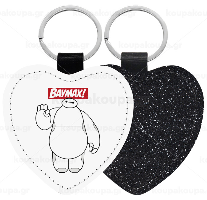 Baymax hi, Μπρελόκ PU δερμάτινο glitter καρδιά ΜΑΥΡΟ
