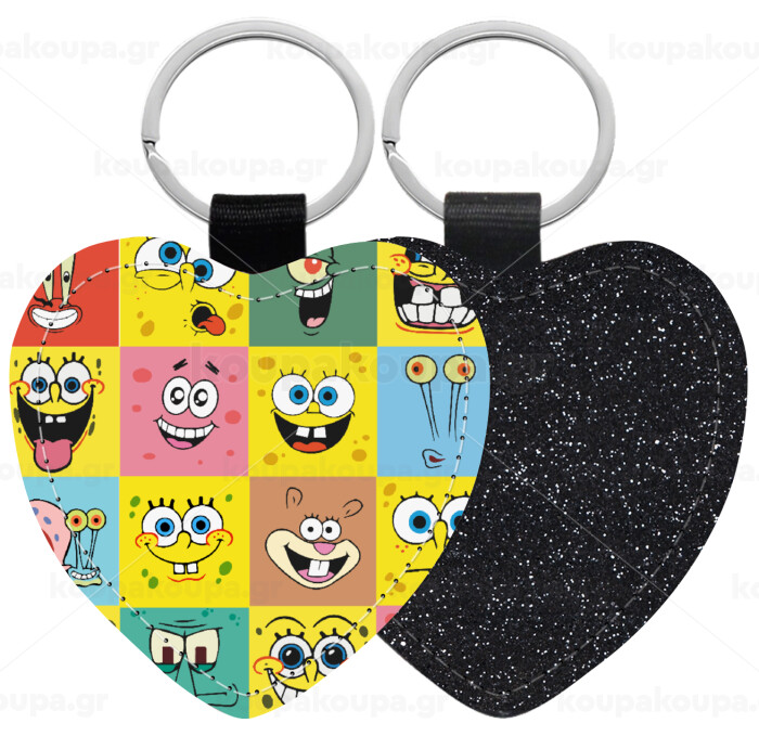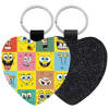 BOB spongebob and friends, Μπρελόκ PU δερμάτινο glitter καρδιά ΜΑΥΡΟ