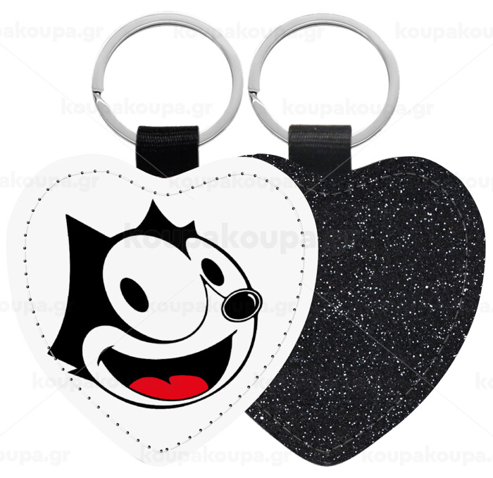 Felix the cat, Μπρελόκ PU δερμάτινο glitter καρδιά ΜΑΥΡΟ