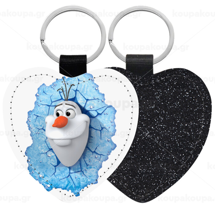 Frozen Olaf, Μπρελόκ PU δερμάτινο glitter καρδιά ΜΑΥΡΟ