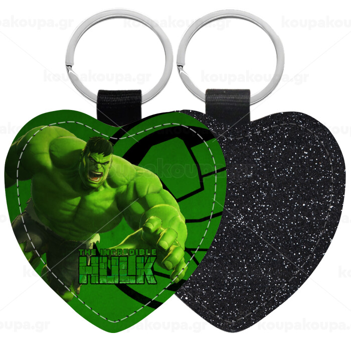 Hulk, Μπρελόκ PU δερμάτινο glitter καρδιά ΜΑΥΡΟ