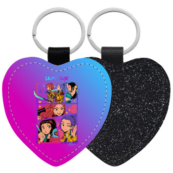 Huntrix Kpop Girls, Μπρελόκ PU δερμάτινο glitter καρδιά ΜΑΥΡΟ
